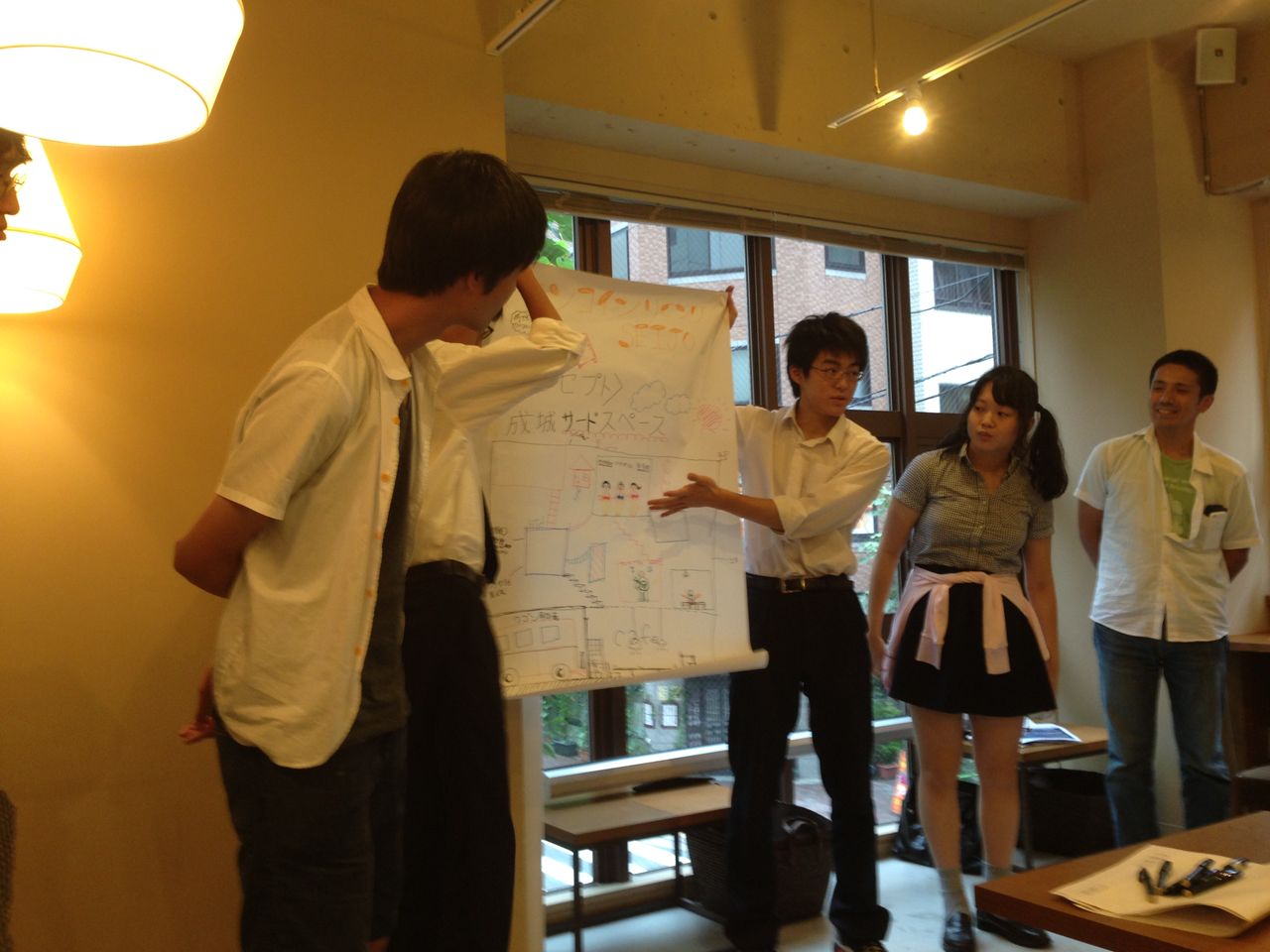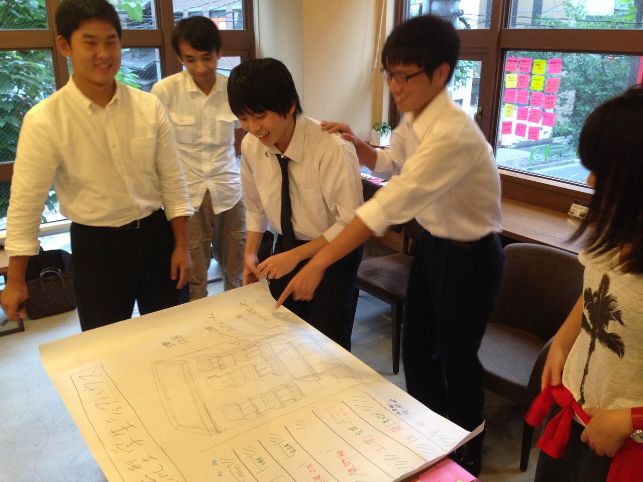 高校生3名、建築系大学1年生1名、ガス会社、化粧品会社、建築家の混合チーム。